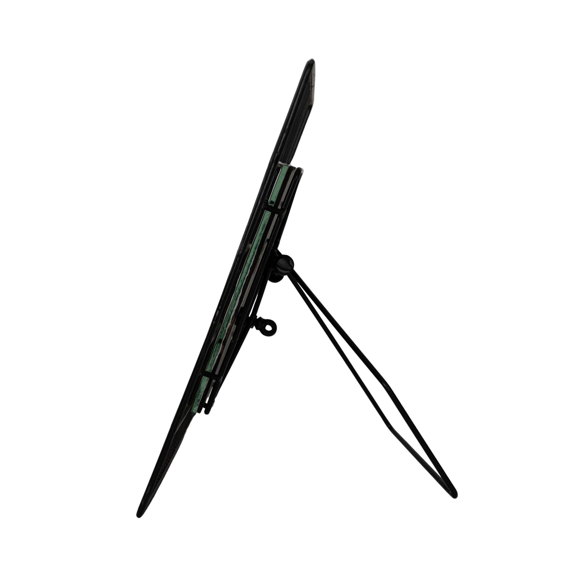 The Auden 4x6 Wire Photo Frame features intricately hand-crafted metalwork and a clean black finish that adds a textural element to a desk, mantel, or coffee table. The easel on the back is designed for portrait or landscape orientation.