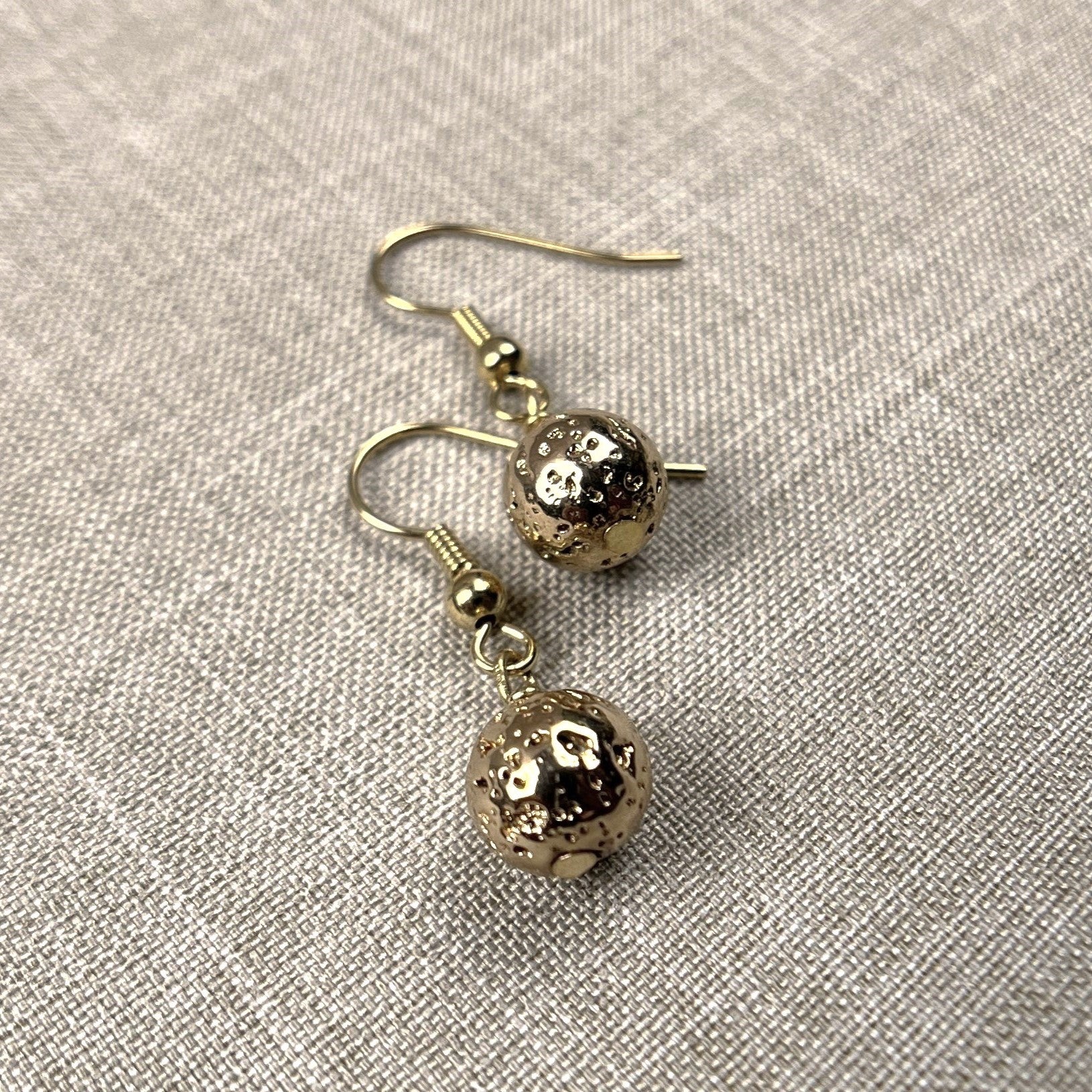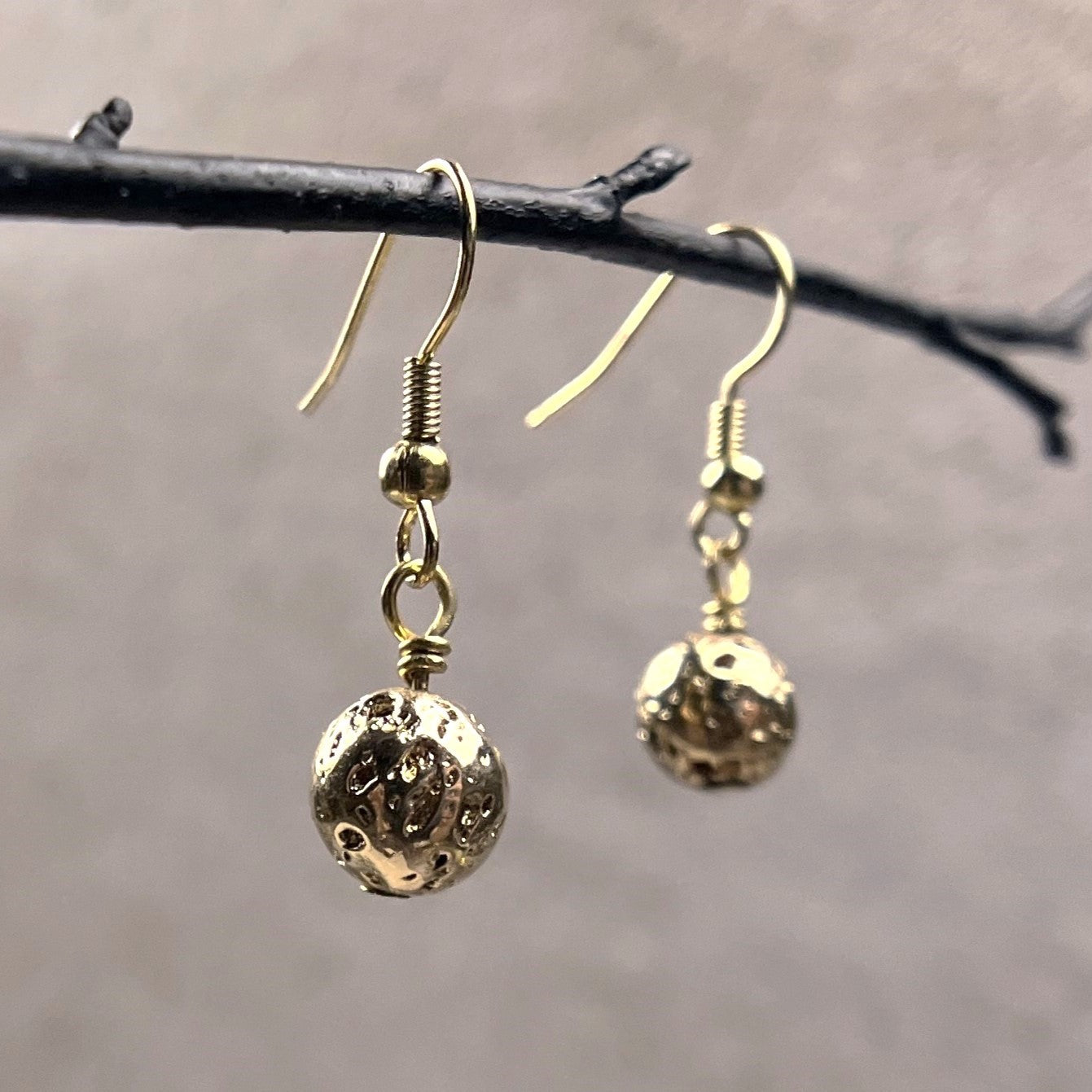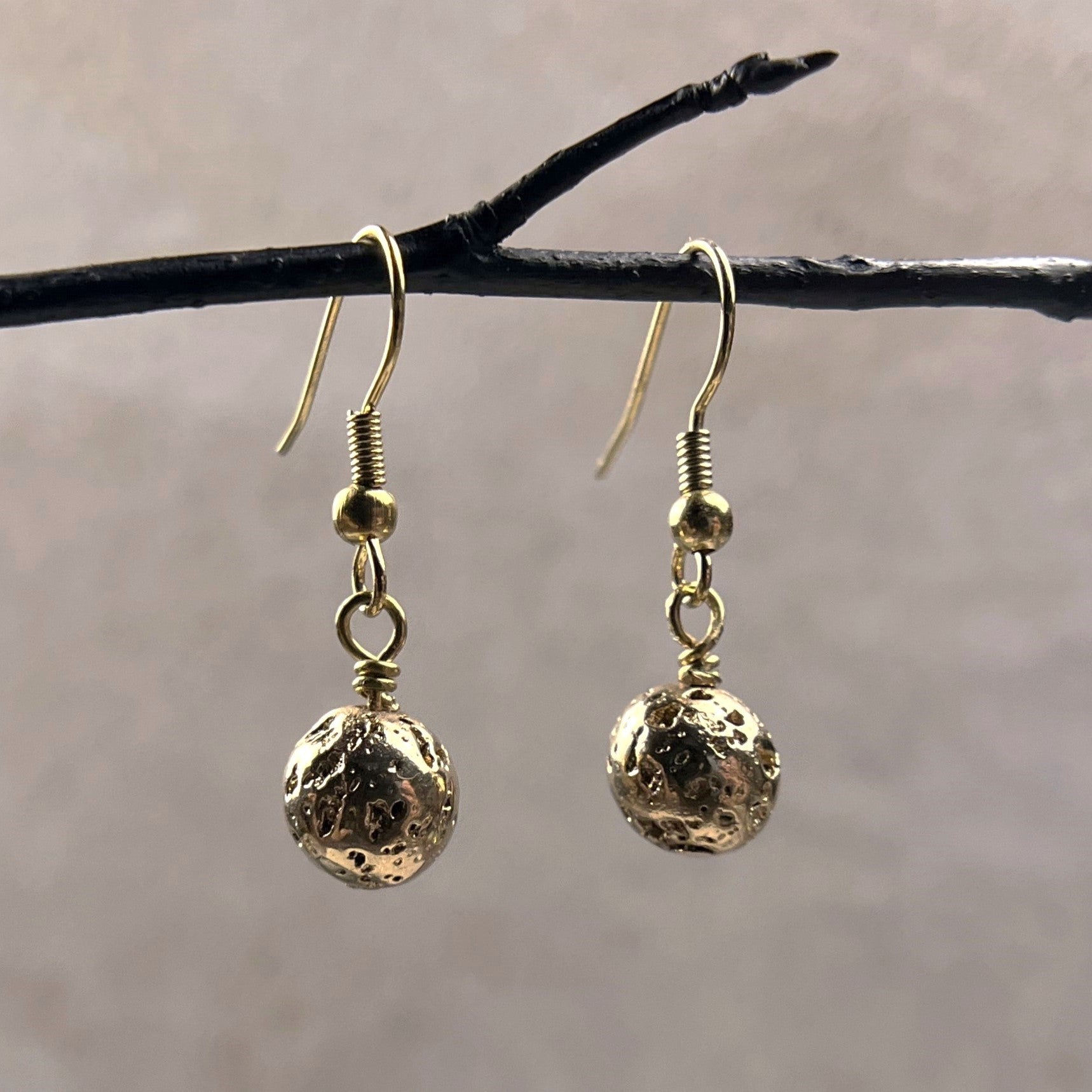 Elevate your style with our Gold Lava Stone Earrings. These minimal but elegant earrings feature 8mm gold plated lava beads, with gold plated hardware. Because these are lava stones, they are very lightweight and beautifully textured!